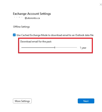 Make sure your UTMail+ account is selected, then click Change. Drag the slide under "Download emails for the past" all the way to the right so the time says "All." Click Next, then Done, then Close. Do the same for the other email account.