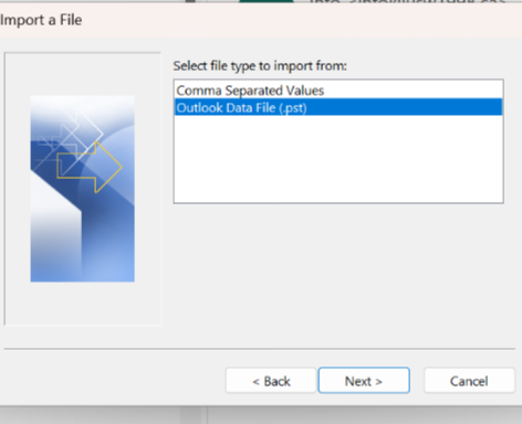 8. You’ll be given a choice of two files. Make sure you select Outlook Data File (.pst).