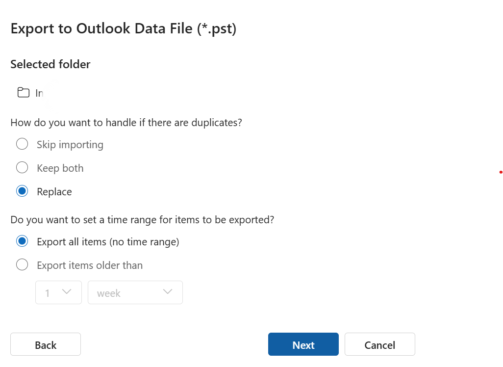 If you don’t want to import into your Microsoft 365 mailbox, choose Import items into the current folder. This imports the data into the folder currently selected.