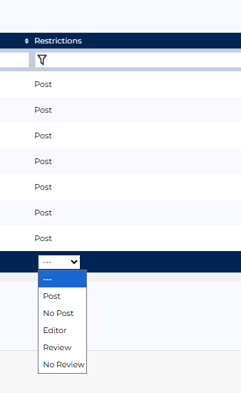 - Check the box next to the subscriber’s name, and choose Post or No Post in the Post drop-down menu under the Restrictions column. Click Update.