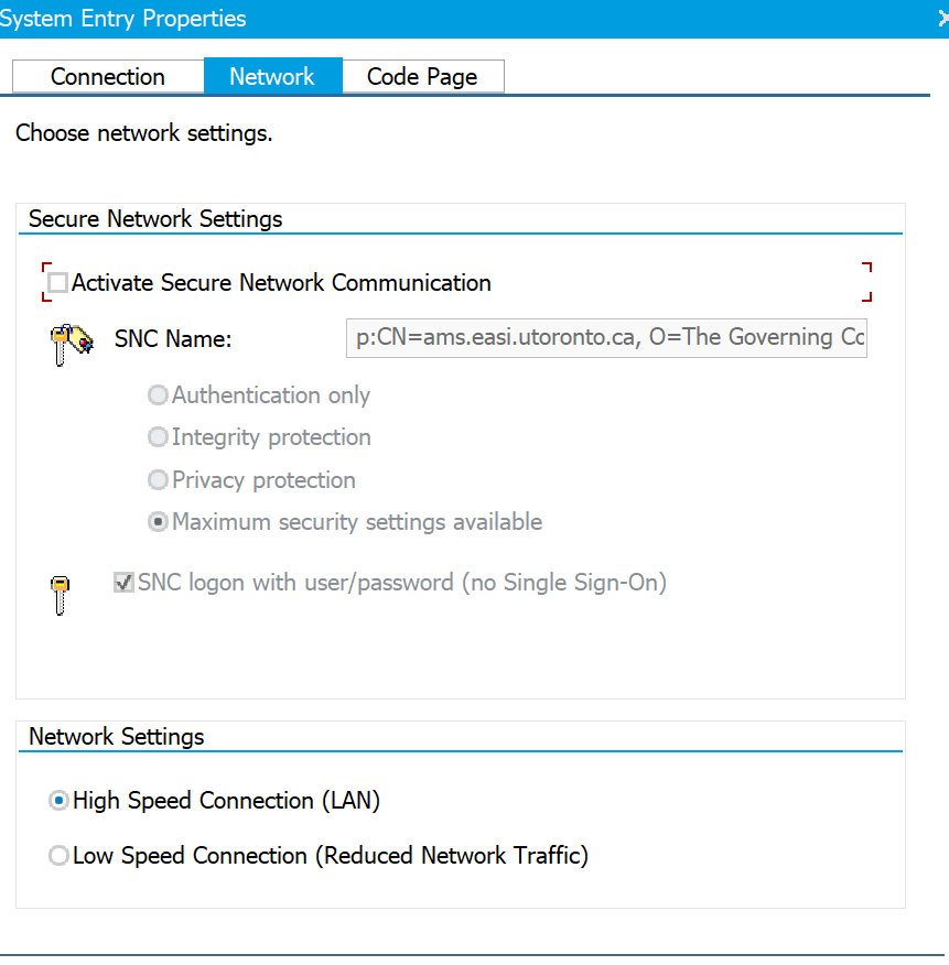 2. In the System Properties window, uncheck the "Activate Secure Network Communication (SNC)" option |