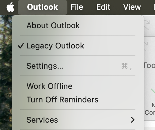 Option 3 (for Mac): Select "Legacy Outlook" from File menu